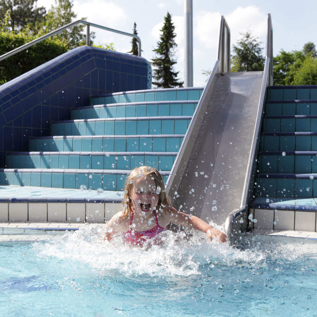 Unser Ausschwimmkanal steht Ihnen mit einer Wassertemperatur von 28 °C und einer Tiefe von 1,20 Metern zur Verfügung, um spielend leicht zwischen unseren beiden Welten zu wechseln.