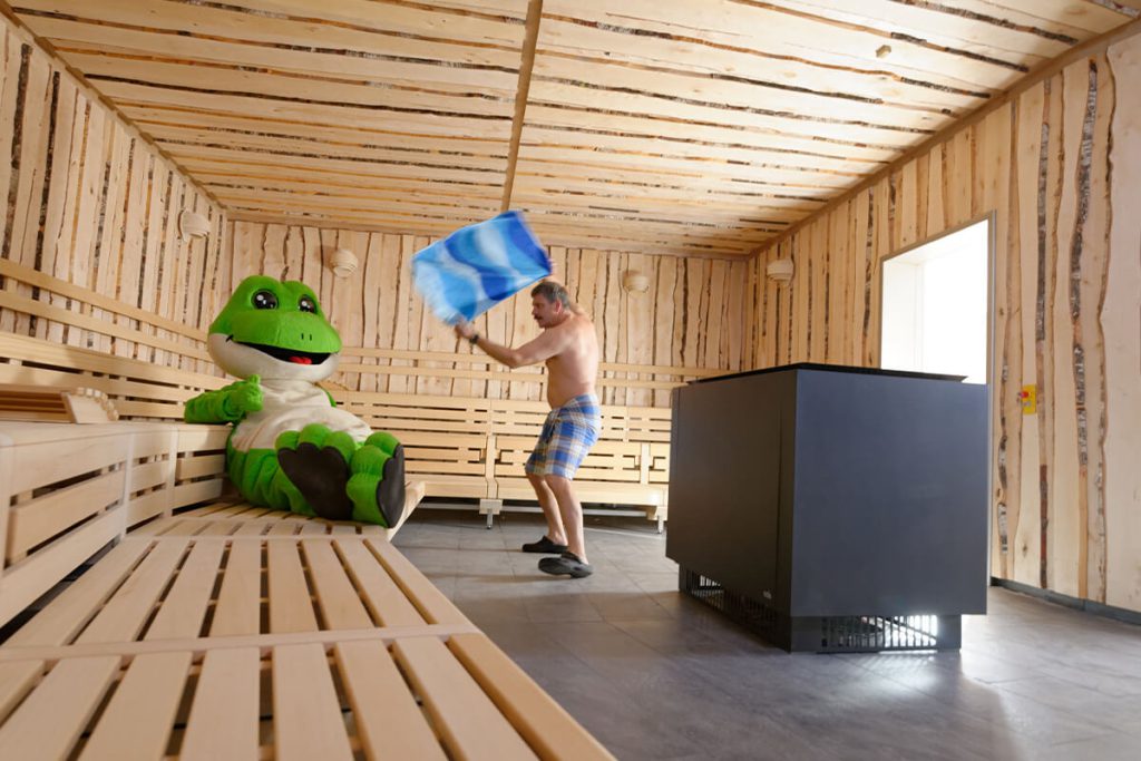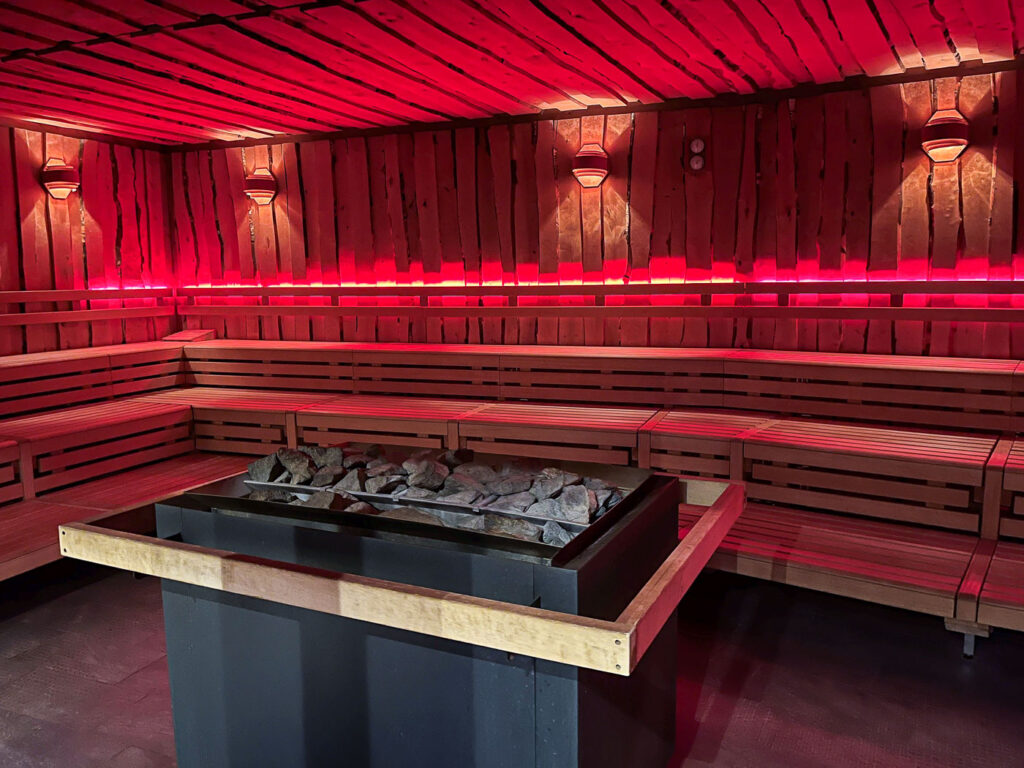 Die Eventsauna wird als Heißluftsauna betrieben. Die Schwitzkabine mit über 50m² bietet Platz für bis zu 60 Gäste.